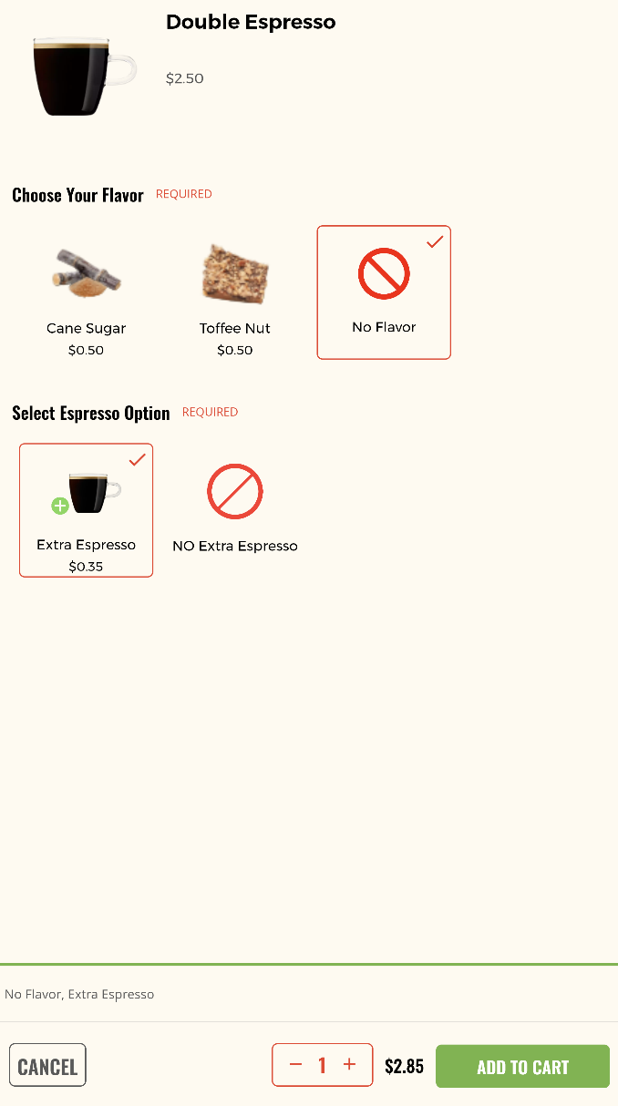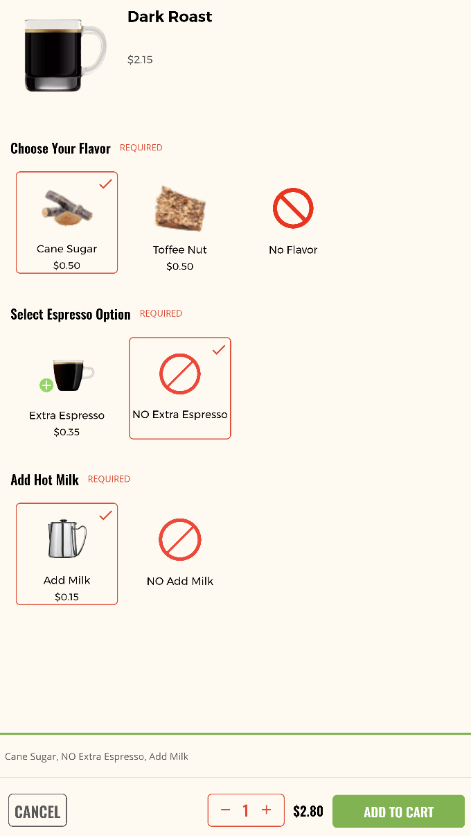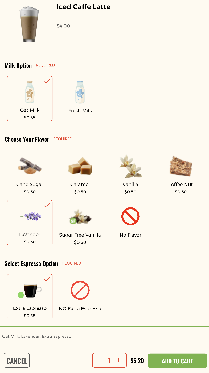 After selecting a beverage, customers have the option to customize it according to their preferences.